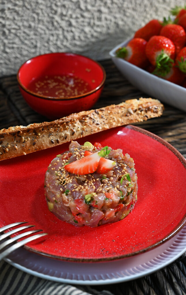 Liez la préparation avec un peu d’huile d’olive et bien poivrer. Goûtez et rectifiez l’assaisonnement si besoin. Dressez harmonieusement.